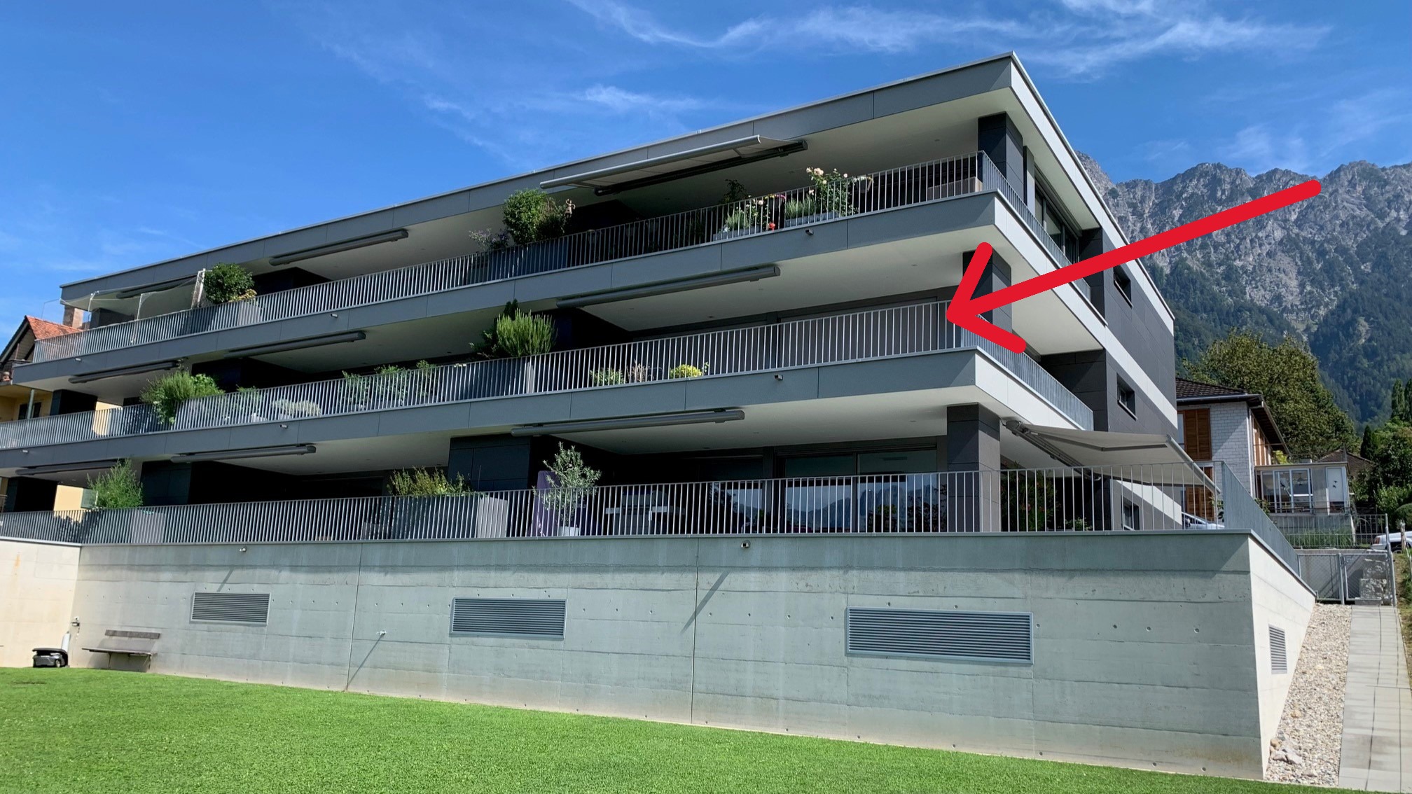 Die 5.5-Zimmerwohnung ist durch ihre grossen Fenster besonders hell und zeichnet sich durch eine klare Raumstruktur aus. Sie bietet einen attraktiven Wohn- und Essbereich sowie eine grosse, moderne Küche. Vom gesamten Wohnbereich aus, einschliesslich der teilweise überdachten Terrasse, geniessen Sie eine beeindruckende Fernsicht auf die Berge. Die Terrasse bietet zudem einen kleinen Abstellraum und ein Hochbeet für Pflanzen und Kräuter. Die Wohnung verfügt über ein grosses Hauptschlafzimmer mit einem eigenen Badezimmer mit Badewanne, Dusche und WC. Drei weitere Schlafzimmer und ein Badezimmer mit Dusche und WC runden das Angebot ab.